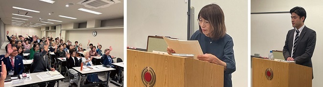 | 「合同おはよう倫理塾」 日時:2025年6月7日(土) 開催場所:大阪倫理会館 講師:生涯局普及開発西部 塚本玄樹研究員 参加人数:一般61名+研究員1名 合計62名 6月7日(土)大阪倫理会館にて、塚本玄樹研究員をお迎えして、合同おはよう倫理塾を開催しました。実践報告は、山下勇雄さん。生い立ちから自身のコンプレックス、家業を継いだが廃業、挫折などを経て、自立支援の会社を開業。奥様へ挨拶の実践をすることで、関係が修復していくことをお話されました。 塚本玄樹研究員は、山下さんが苦難ときちんと、とらえられたこそ、そこからどう行動していくかを考え、それが喜びに転じて、現在の山下さんの事業や家庭につながっていると解説してくださいました。 倫理を学び実践してよかったなという想いを一人でも多くの方に感じて頂くということを目指して活動していること、栞の一節をところどころ例にだし、解説してくださいました。また研究員のお母様の話をされました。栞を読んでいると、励まされたり、プレッシャーを感じることもあると思います。そのプレッシャーをなったときに、マイナスにとらえず、そこをどう乗り越えていくか、それをどう受け止め自分自身の生活に活かしていけるかそこが大事だとお話されました。 |
